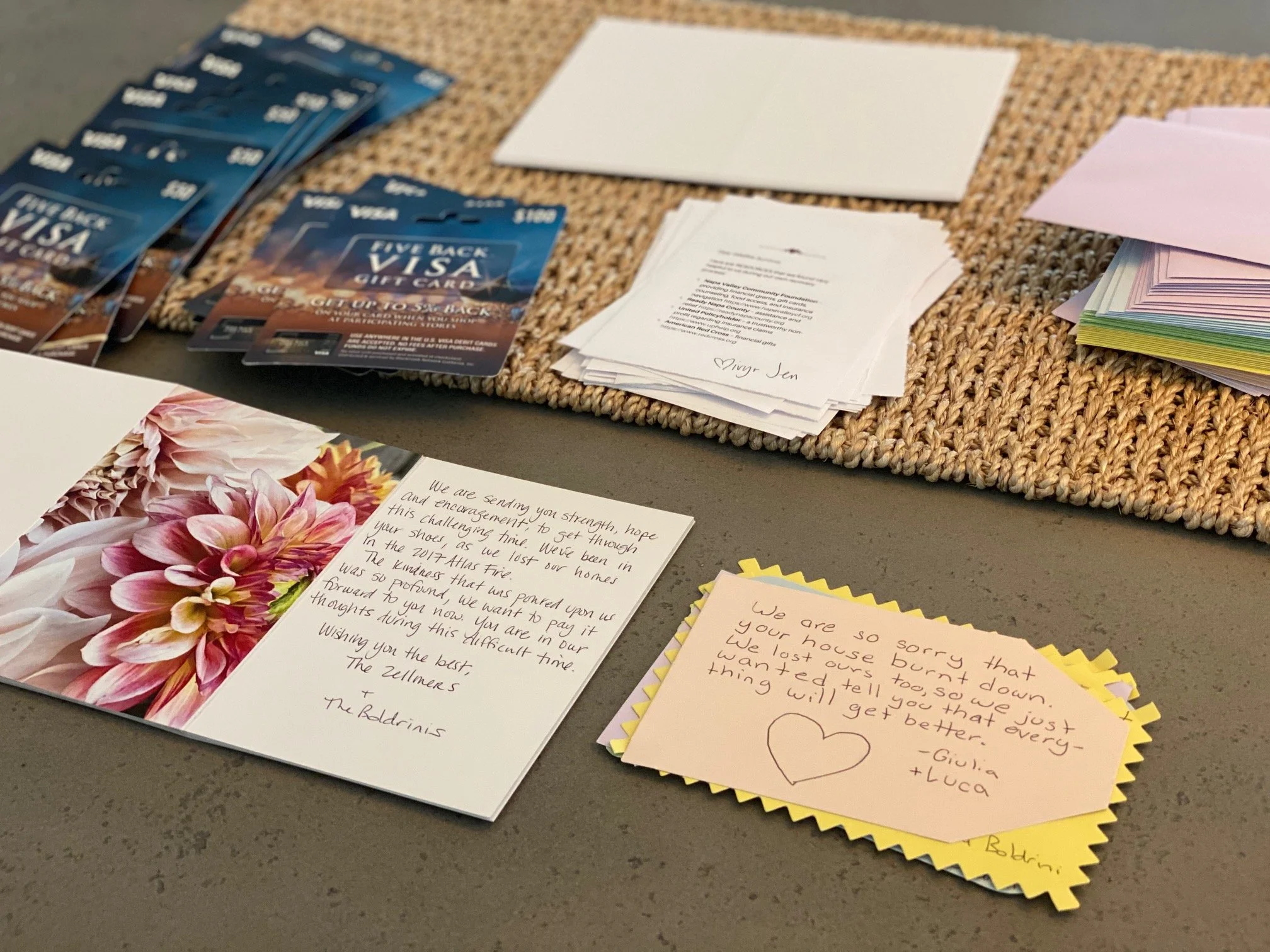 Donations support wildfire survivors through handwritten notes and gift cards that help meet immediate, everyday needs during recovery. Contributions also cover printing, materials, and basic operating costs required to carry out this work.